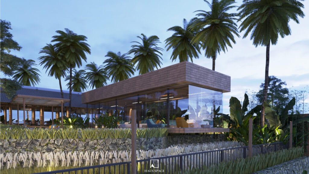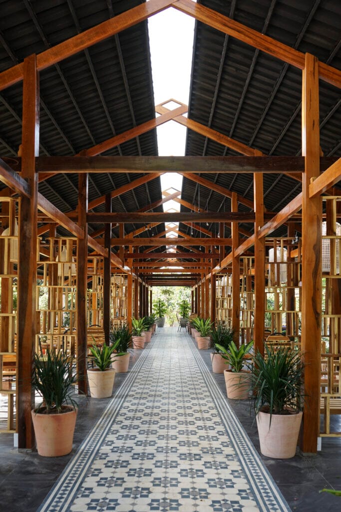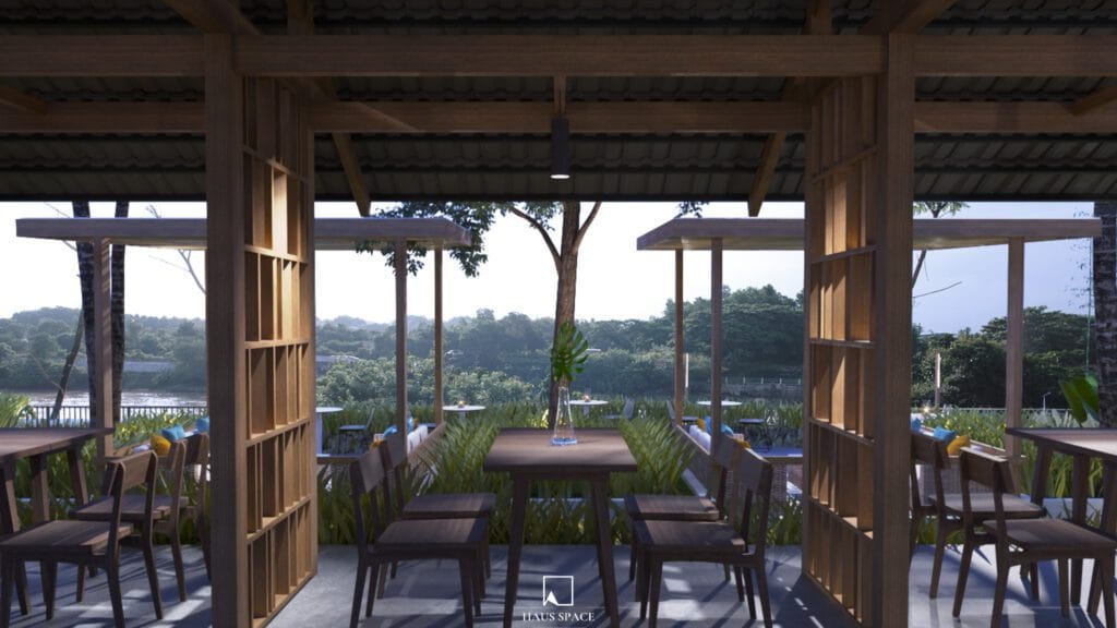 Quán cafe mới được thiết kế dựa trên bảng màu vật liệu hiện có và các hình thái kiến trúc của Pho Da Cafe, bao gồm một mái dài sử dụng kết cấu thép đơn giản và ngói xi măng. Hệ thống hỗ trợ chính lặp lại khung gỗ quen thuộc có thể quan sát được tại nhà hàng hiện tại. Không gian quán cafe có các mức độ mở và kín khác nhau. Tầm nhìn từ khu vực ăn uống tập trung vào dòng sông và các hoạt động dọc theo đó, mang đến cho khách hàng sự thoải mái mà vẫn giữ được mối liên kết gần gũi với thiên nhiên.